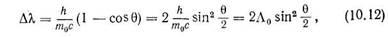 Корпускулярні властивості світла найбільш переконливо проявляються в явищі, яке називається ефектом Комптона. Досліджуючи розсіяння рентгенівського випромінювання різними речовинами, А. Комптон у 1923 р. виявив, що в розсіяному випромінюванні, крім спектральних ліній, яким відповідає довжина падаючої хвилі ,, з'являються лінії, довжина хвиль яких При цьому було встановлено, що збільшення довжини хвилі не залежить від довжини падаючої хвилі . і від природи розсіюючої речовини, а залежить від кута між напрямом розсіяння і напрямом падаючого випромінювання. Експериментально встановлено, що (10.7) де —стала величина, яка дорівнює м.