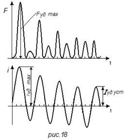 С учетом ударного тока максимум силы получается при условии φ = 0, и сила меняется по закону