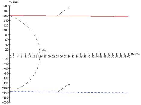 Механическая характеристика для пуска (1) и торможения (2) при подъеме