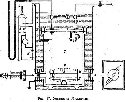 Схема установки Милликена, с помощью которой в 1909 г. были получены решающие результаты, изображена на рисунке 17.