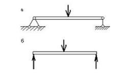 Реальные фермы должны обычно сопротивляться силам, приложенным не только в месте соединения их стержней. На рисунке 31 изображен тепловоз, идущий по мосту. Вес тепловоза вызывает изгиб только того стержня, по которому он движется в данный момент, а все остальные стержни фермы в это время работают на растяжение или сжатие. Таким образом, применение ферм позволяет свести изгиб балки по всей ее длине к изгибу только отдельного короткого стержня, а короткие балки хорошо противостоят изгибу, комбинация тонких балок-стержней в виде фермы позволяет перекрывать большие пролеты между опорами (100 м и более), чего нельзя добиться, применяя монолитные балки. При этом экономится большое количество материала.