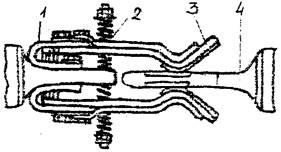 1 – гибкая связь;2 – пружины; 3 – одна часть ножа в виде пружинящих помелей;