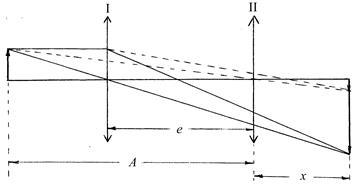 Нетрудно видеть, что при этом оба положения линзы будут симметричны относительно середины расстояния между предметом и изображением. Действительно, воспользовавшись уравнением (1), можно написать для первого положения линзы (рис.2).