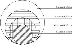 1) денежно-расчетный оборот, который обслуживает расчетные отношения за товары и услуги и по нетоварным обязательствам юридических и физических лиц;