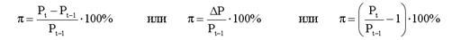 Главным показателем инфляции выступает темп (или уровень) инфляции, который рассчитывается как процентное отношение разницы уровней цен текущего и предыдущего года к уровню цен предыдущего года: