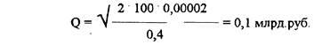 Приведем пример использования модели Баумола для определения политики управления наличностью в ФПГ "Сибагромаш" Предположим, что денежные расходы компании в течение года составляют 100 млрд.рублей Процентная ставка по государственным ценным бумагам в отечественной практике - показатель меняющийся. Определим для примера в 40% годовых, а затраты, связанные с каждой их реализацией (что тоже является изменяющейся величиной) составляют 20000 рублей. Следовательно, Q = 0,1 млрд. руб. = 100 млн. руб.