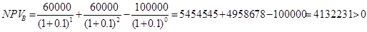 NPV для А и В положительные, поэтому оба проекта могут участвовать в дальнейшем рассмотрении и для более эффективного отбора рассчитать показатель модификации нормы доходности для каждого проекта.
