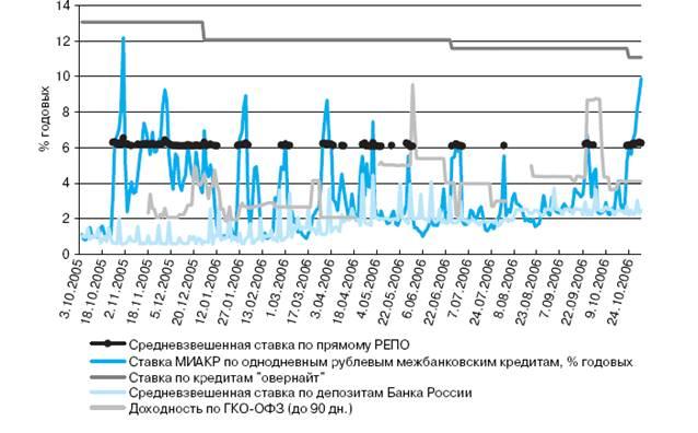 Рис. 2.1. Динамика процентных ставок денежного рынка в октябре 2005года – октябре 2006 года