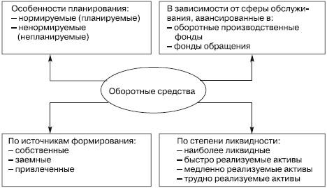 Классификация оборотных средств предприятий может быть рассмотрена по следующим направлениям: