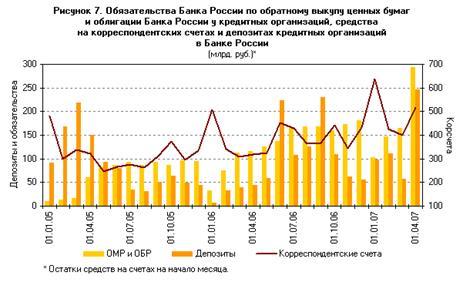 Банк России в январе—марте 2007 г. активно проводил операции по абсорбированию свободных денежных средств кредитных организаций в целях ограничения темпов роста денежного предложения и снижения инфляции.