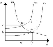 На инфляцию издержек влияют все факторы, смещающие кривую совокупного предложения AS влево: увеличение цен на экономические ресурсы, повышение налогов, снижение производительности факторов производства и др. Можно сказать, инфляция издержек связана с влиянием затратных, неденежных факторов в том смысле, что ее непосредственно определяет не увеличение предложения денег в экономике, а рост затрат на производство.