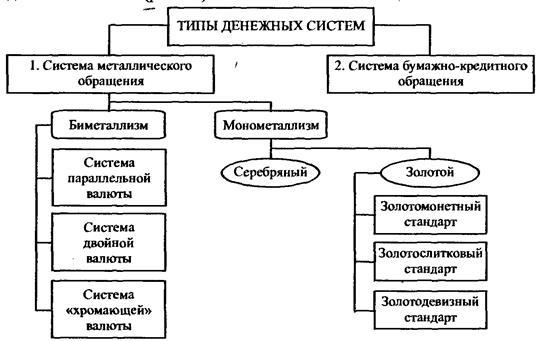 Двумя основными типами денежных систем являются монометаллизм и биметаллизм.