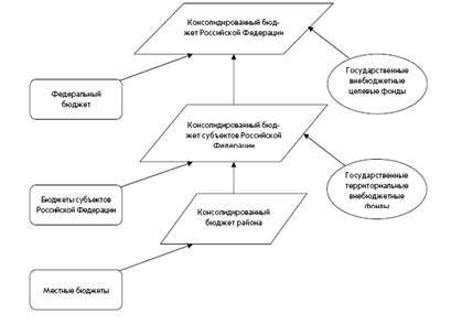 Обособленным понятием в структуре бюджетного устройства России является понятие консолидированного бюджета,который представляет собой свод бюджетов всех уровней бюджетной системы Российской Федерации на соответствующей территории (рис. 1).