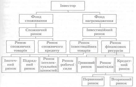 Крім цього, інвестор завжди намагається залучити акціонерний капітал у справу з метою зменшення ризику та розподілу відповідальності. На рис.1 наведена схема ринкових відносин, суб'єктом яких є інвестор.