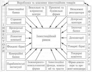 Головним інвестиційним товаром є продукція проектно-дослідницьких, будівельних, монтажних підприємств, фірм та постачальників матеріально-технічних ресурсів, яка загалом забезпечує інвестиційний процес. На інвестиційному ринку працює велика кількість різних посередників, які створюють його інфраструктуру (рис.2).