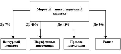 Мировой инвестиционный капитал имеет приблизительно следующую структуру.