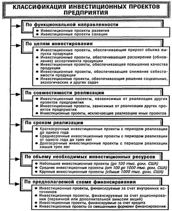 В зависимости от видов инвестиционных проектов, изложенных в рассматриваемой их классификации, дифференцируются требования к их разработке.