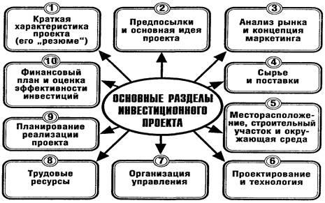 В соответствии с рекомендациями ЮНИДО (Организации Объединенных Наций по Промышленному Развитию) инвестиционный проект должен содержать следующие основные разделы (рис. 2.).