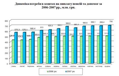 Рис.В.2. Динаміка щомісячної потреби в коштах на виплату пенсій в Пенсійному Фонді України у Дніпропетровській області у 2006 2007 роках