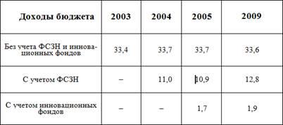 За 1995—2009 гг. значительно увеличился охват бюджета за счет поэтапного включения в него внебюджетных средств государства (таблица 2.2). В 2004 г. в бюджет включен Фонд социальной защиты населения (ФСЗН) Министерства труда и социальной защиты, в 2005 г. — инновационные фонды, в 2006 г., с принятием Закона о бюджете, — фонд развития строительной науки.