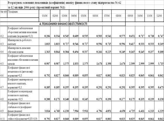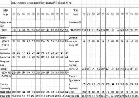 1.3 Результати прогнозування балансів підприємства № 62 та звітів про результати його фінансової діяльності за 12 місяців 2006 року