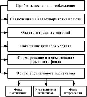 Получение прибыли — непременное условие и цель предпринимательства любой хозяйственной структуры. Прибылью (рентабельностью) оценивается эффективность хозяйствования, прибыль — главный источник финансирования экономического и социального развития; прибыльность служит основным критерием выбора инвестиционных проектов и программ оптимизации текущих затрат, расходов, финансовых вложений.Прибыль как критерий эффективности воспроизводства и как показатель, имеющий две границы — объем производства продукции или услуг (реализации) и себестоимость — обладает одним важным свойством: она отражает конечный результат интенсивного и экстенсивного развития [11, с.47].Под распределением прибыли понимается направление прибыли в бюджет и по статьям использования на предприятии. Законодательно распределение прибыли регулируется лишь в той ее части, которая поступает в бюджеты разных уровней в виде налогов и других обязательных платежей. Прибыль, остающаяся в распоряжении предприятия, используется им самостоятельно [15, с.394].
