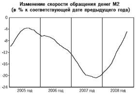 В предыдущие годы рост цен на активы (на рынке жилья и акций) существенно опережал рост потребительских цен, что выражалось в снижении скорости обращения денег. Однако снижение темпов роста цен на активы, а вместе с ним и менее интенсивное снижение скорости обращения денег оказывают сдерживающее влияние на прирост спроса на деньги в 2008 году.
