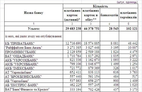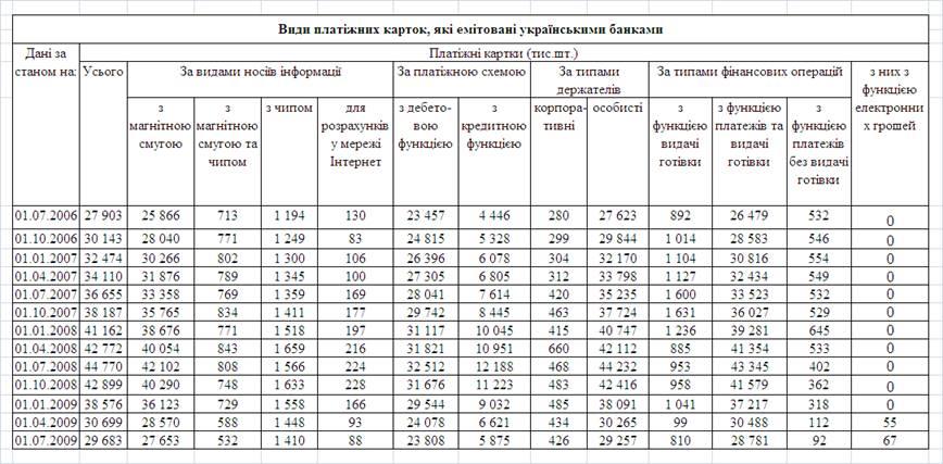Як показує аналіз функціональної структури емітованих комерційними банками платіжних карток, основними картками в Україні є: