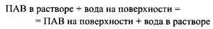 Пусть концентрация ПАВ на поверхности равна И, а концентрация воды - ; С-концентрация ПАВ в растворе, а концентрация воды в растворе постоянна из-за очень низкой концентрации ПАВ, тогда получим