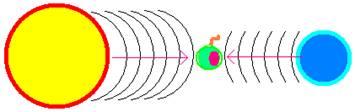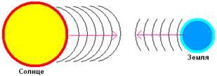 Рис. 1. Миллиарды частиц Солнца (протоны, нейтроны и электроны) колеблются, возбуждая продольные упругие колебания. Ведь на Солнце идет реакция синтеза тяжелых ядер из более легких. Частицы Земли – протоны нейтроны и электроны – как и любые материальные тела, колеблются ответными колебаниями, так как их собственный тон совпадает с тоном частиц Солнца. При этом встречные волны ведут себя согласно известным законам распространения волн. То есть – они просто «проходят» друг сквозь друга, не изменяя своих физических характеристик. Таким образом, как и в случае со светом (Земля светится не своим собственным, а отраженным солнечным светом), частицы Земли будут совершать вынужденные ответные колебания в ответ на звук, возбуждаемый Солнцем. Совершенно ясно, что Земля при этом является частью простейшей колебательной системы.