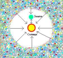 Итак - материя. Под термином «материя» в Звуковолновой теории подразумеваются протоны, нейтроны и электроны. Как бы и кто к этому не относился, но именно из этих частиц и состоит Солнце. И стол, и яблоко, упавшее на мудрую голову Исаака Ньютона, и сам он, и я, и Вы. И вся Вселенная – кометы, спутники планет, метеориты, квазары, пульсары, планеты, белые карлики, красные гиганты, нейтронные звезды и просто звезды, и черные дыры, и то, чему человек еще не дал названия – все-все это состоит из одного и того же - протонов, нейтронов и электронов. И это все вместе взятое подчиняется гравитации. Потому что все оно – ма-те-рия. Нет возражений? Если возражения имеются – изучайте фундаментальные науки. Физику, астрономию, астрофизику, космогонию, космологию и пр., и пр., хотя бы за пару тысяч последних лет. Да, и еще, едва-едва не упустил. Свет. Свет, который идет к нам от (почему то говорят – нашего. Кто им его дарил? Или просто отдавал? Или как?) Солнца. Этот свет еще электромагнитным спектром называют. И этот электромагнитный спектр вмещает в себя все известные фундаментальной науке излучения. И он так же является материей. Когда английский физик Крукс нечаянно (как всегда – нечаянно. А известно ли читателю, что любые мало-мальски полезные открытия все сделаны нечаянно? Непонятно почему, но этот факт тщательно скрывается от простых смертных) для других целей сделал первую световую вертушку, никто из научных столбов того времени даже и слушать не хотел, что вращение вертушки указывает на материальность света. Но после все-таки пришлось согласиться. Нет возражений? И у тех, кто не понаслышке знает о простейших опытах с прибором того же Крукса тоже нет возражений? Тогда об опытах Лебедева и остальных мы вспоминать не будем. Подчеркнем только, что и явление фотоэлектрического эффекта в данном случае играет в нашу пользу – солнечный свет, а равно и свет остальных звезд есть не что иное, как - материя.