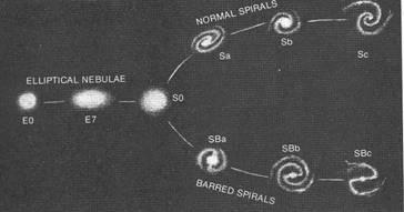 Многообразие наблюдаемых форм галактик вызвало у астрономов желание объединить похожие объекты и разбить галактики на ряд классов по их внешнему виду (по морфологии). В основе наиболее часто используемой морфологической классификации галактик лежит схема, предложенная Э.Хабблом в 1925 и развитая им в 1936. Галактики разделяются на несколько основных классов: эллиптические (Е), спиральные (S) линзовидные (S0) и неправильные (Irr).