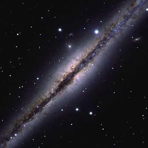 В газовой среде межзвездного пространства содержится и мелкодисперсный твердый компонент – межзвездная пыль. Она проявляет себя двояко. Во-первых, пыль поглощает видимый и ультрафиолетовый свет, вызывая общее ослабление яркости и покраснение галактики. Наиболее непрозрачные (из-за пыли) участки галактики видны как темные области на светлом ярком фоне. Особенно много непрозрачных областей вблизи плоскости звездного диска – именно там концентрируется холодная межзвездная среда. Поэтому, если смотреть на диск галактики «с ребра», то обычно бывает хорошо заметна пылевая полоса, пересекающая галактику по диаметру. Во-вторых, пыль излучает сама, отдавая накопленную энергию света в форме далекого инфракрасного излучения (в диапазоне длин волн 50–1000 мкм). Поэтому полная энергия излучения пыли бывает сопоставима с энергией видимого излучения, приходящего к нам от всех звезд галактики. Суммарная масса пыли сравнительно невелика: она в несколько сотен раз меньше, чем полная масса межзвездного газа. Особенно мало пыли в Е-галактиках, где холодный газ также практически отсутствует; а также в карликовых галактиках, где газа может быть много, но среда содержит мало тяжелых элементов, необходимых для формирования пылинок. Пыль в галактиках является продуктом эволюции звезд.