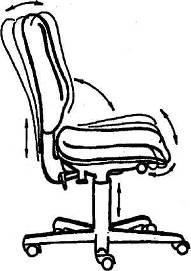 Кресло должно учитывать динамичность позы сидячего, т. е. обеспечивать легкость перемещения конечностей, логические движения верхней части тела оператора. Форма спинки кресла должна повторять форму спины.