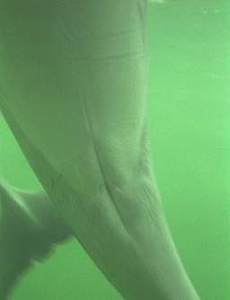 Кожа касатки имеет свойство активно регулировать и снижать гидродинамическое сопротивление плаванию посредством взаимодействия кожного покрова с обтекающим потоком воды. Кожа самонастраивается и задерживает образование вихрей вокруг тела касатки при их стремительном движении. Передние конечности превратились в грудные уплощенные плавники. Сжатый с боков мускулистый хвостовой стебель очень гибкий, подвижный, заканчивается широкими горизонтальными лопастями. Спинной плавник, придаёт устойчивость телу в воде. Грудные, спинной и особенно хвостовой плавники имеют переменную упругость, которая меняется в зависимости от скорости плавания и регулируется специфическими комплексными кровеносными сосудами. Регулируемый гидроупругий эффект в плавниках и активная самонастройка кожи - важнейшие приспособления к быстрому плаванию. Все плавники также выполняют роль терморегуляторов, через которые в первую очередь отдается избыток тепла при перегреве тела (приложение 1). Потовых и сальных желез нет. Толстый подкожный слой жира защищает тело от охлаждения и используется как энергетический запас во время сезонных голодовок, поэтому толщина его колеблется по сезонам года. В базальном слое кожи сильно повышено количество уточнить - репродуктивных клеток, поэтому раны этих животных зарастают быстро.