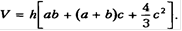 где hab - объем котлована без учета откосов; h(a+b) - объем котлована над откосами без учета углов; с - горизонтальная проекция откосов; 4h/3*c2