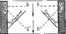 Рис. 1.6. Схема розвитку крайових тріщин у результаті нерівномірного руху гірського льодовика