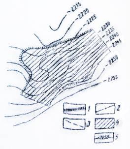 Структурная карта по кровле нефтеносного горизонта: