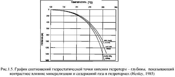 В более глубинных частях зоны восходящего потока гидротермы однофазные. Для них градиент давлений контролируется физическими свойствами воды, которые изменяются в результате растворения различных минеральных соединений.