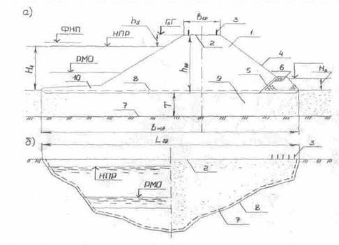 Земляні греблі відносяться до водопідпірних споруд з формою, що в поперечному перерізі схожі на трапецію. Основні елементи профілю показано на рис.4.1.