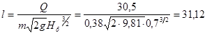 — довжина водозливного фронту, м