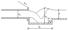 Оскільки число Фруда >1, тобто потік знаходиться в бурхливому стані, тому потрібно запроєктувати водобійний колодязь. Для визначення розмірів водобійного колодязя визначаємо довжину стрибка: