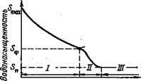 до Sф, на условном контуре вытеснения она плавно понижается по направлению к нефтенасыщенной части пласта. Этот участок характеризует зону водонефтяной смеси, в которой постепенно вымывается нефть. Второй участок (зона II) с