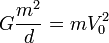 где V — текущая скорость звёзд (скорости должны быть одинаковы из-за соображений симметрии), r — расстояние между звёздами, V0