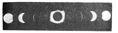 Рис. 2. Фазы солнечного затмения (в центре — полное затмение).