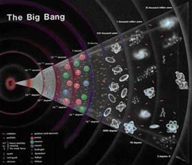 “Большой взрыв” продолжался сравнительно недолго, всего лишь одну тридцатитысячную нынешнего возраста Вселенной. Несмотря на краткость срока, это всё же была самая славная эра Вселенной. Никогда после этого эволюция Вселенной не была столь стремительна, как в самом её начале, во время “большого взрыва”. Все события во Вселенной в тот период касались свободных элементарных частиц, их превращений, рождения, распада, аннигиляции.