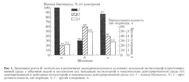 Н-меченых БАС [30, 31]. Большой научно-практический интерес к использованию дейтерированной метилотрофной биомассы для синтеза продуцентов рибонуклеозидов определил цель настоящей работы, связанной с изучением принципиальной возможности биосинтеза 2