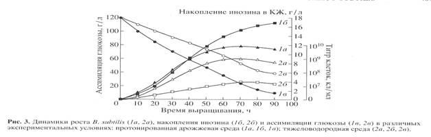 Н-меченого пуринового рибонуклеозида инозина (выход 3.9 г c 1 л ростовой среды) с использованием адаптированного к дейтерию штамма Bacillus subtilis