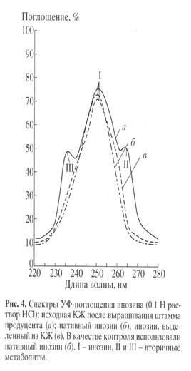 С). Исследование уровня дейтерированности биосинтетического инозина методом масс-спектрометрии FAB выявило полиморфизм включения дейтерия в молекулу (изотопный состав инозина: 4 ат. 2