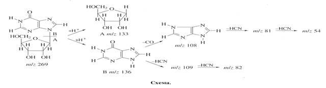 C) was carried out. The studyng of the level of deuterium enrichment of inosine by a method of FAB mass-spectrometry found out the polymorhysm of isotopic introduction into the molecule (isotopic composition of inosine: 4 at. 2